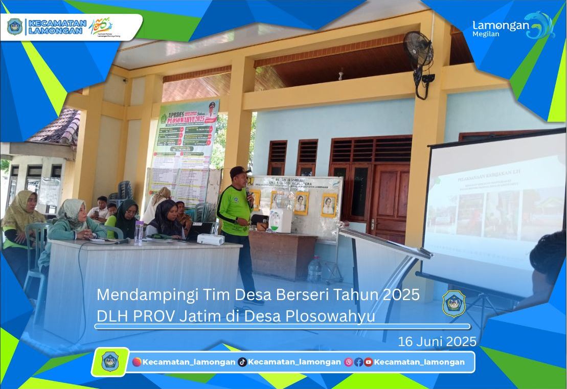 Kecamatan Lamongan, Sekretaris Kecamatan M.Nur Khairil Huda Mendampingi Tim Desa Berseri Tahun 2025 dari Dinas Lingkungan Hidup Provinsi Jawa Timur di Desa Plosowahyu pada hari Senin tanggal 16 Juni 2025 Pukul 12.00 WIB.